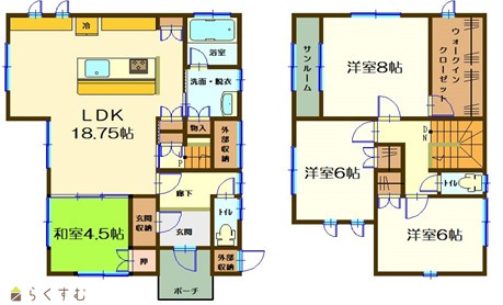 4LDK (和室:4.5畳) (洋室:6、6、8) LDK18.75 |