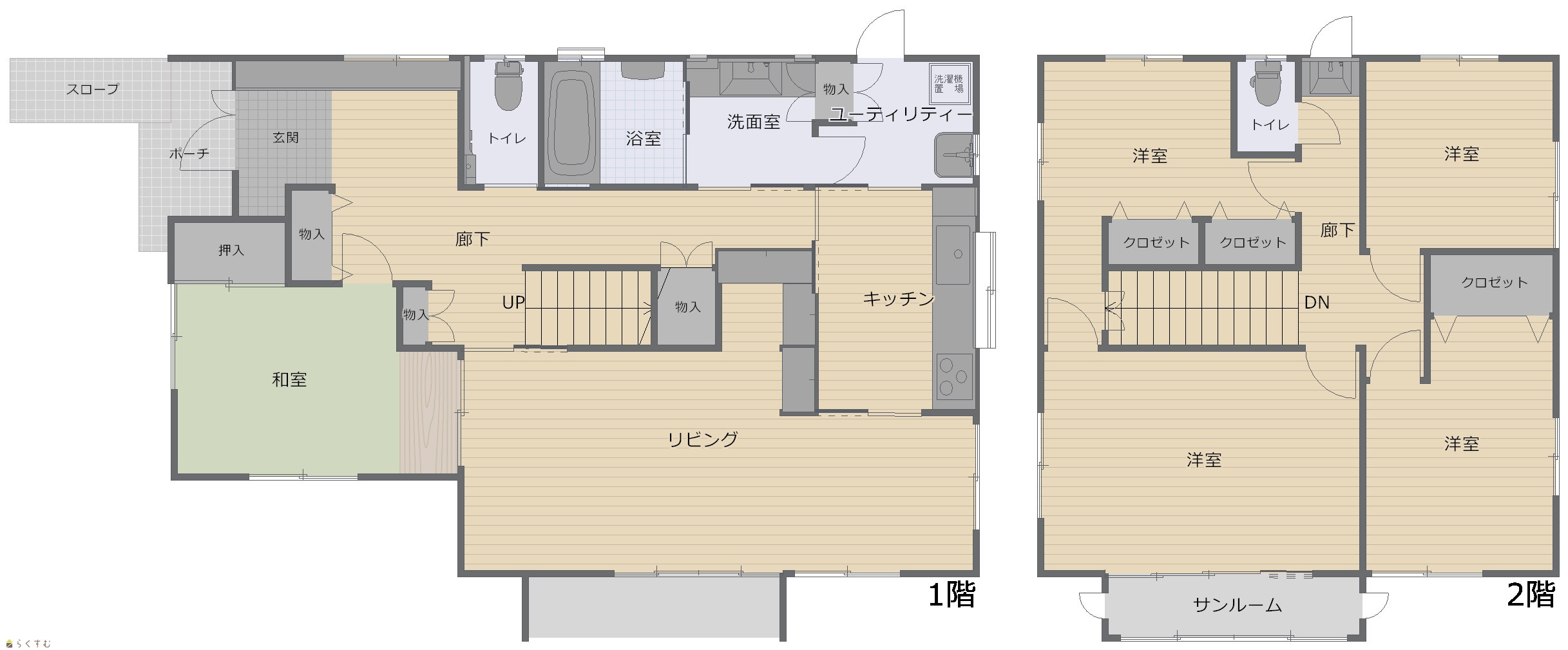 | 建物面積 | 1階 90.75㎡/ 2階 68㎡/ 計 158.75㎡ /48.02坪 | ||