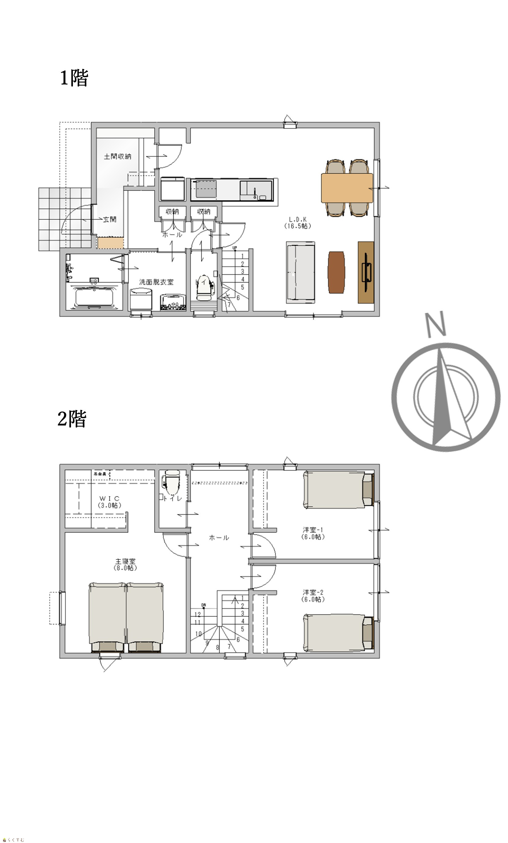 3LDK (洋室:8、6、6) LDK 16.5畳 |