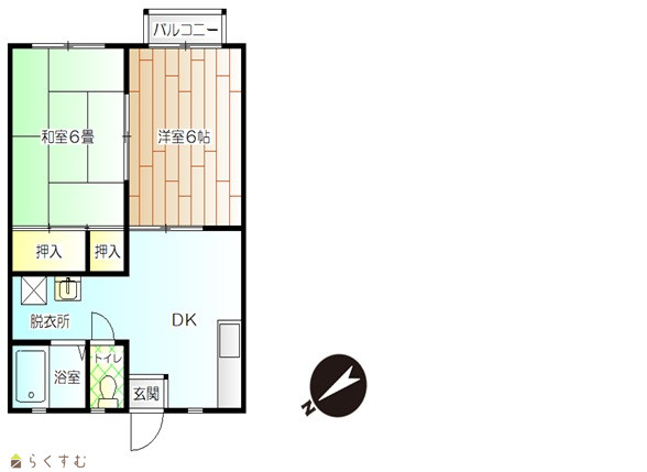 築29年、2DK(和室6畳、洋室6帖)アパートです。