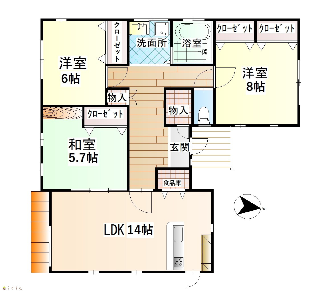 3LDK (和室:5.7畳) (洋室:6、8) LDK14 |