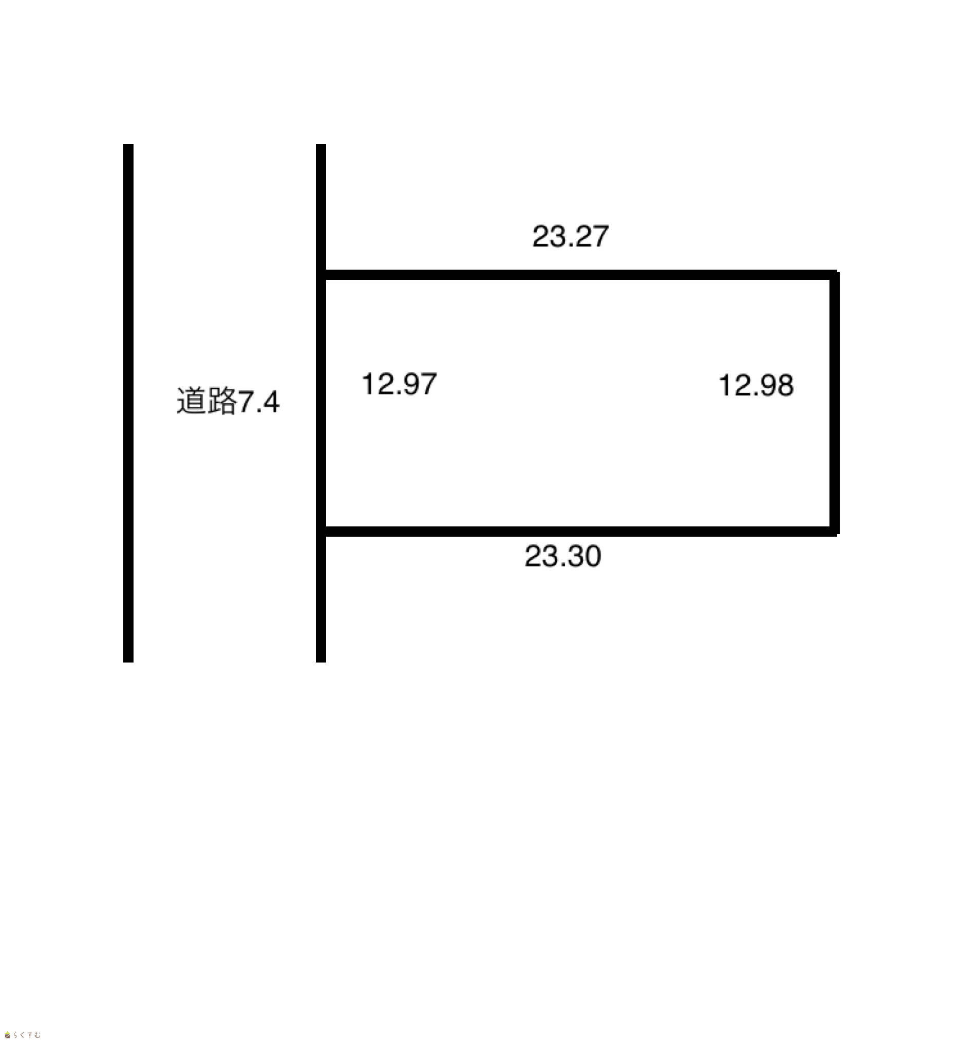 | 形状 | 間口 12.97m × 奥行 23.27m | 道路 | 北西側市道 7.4m |