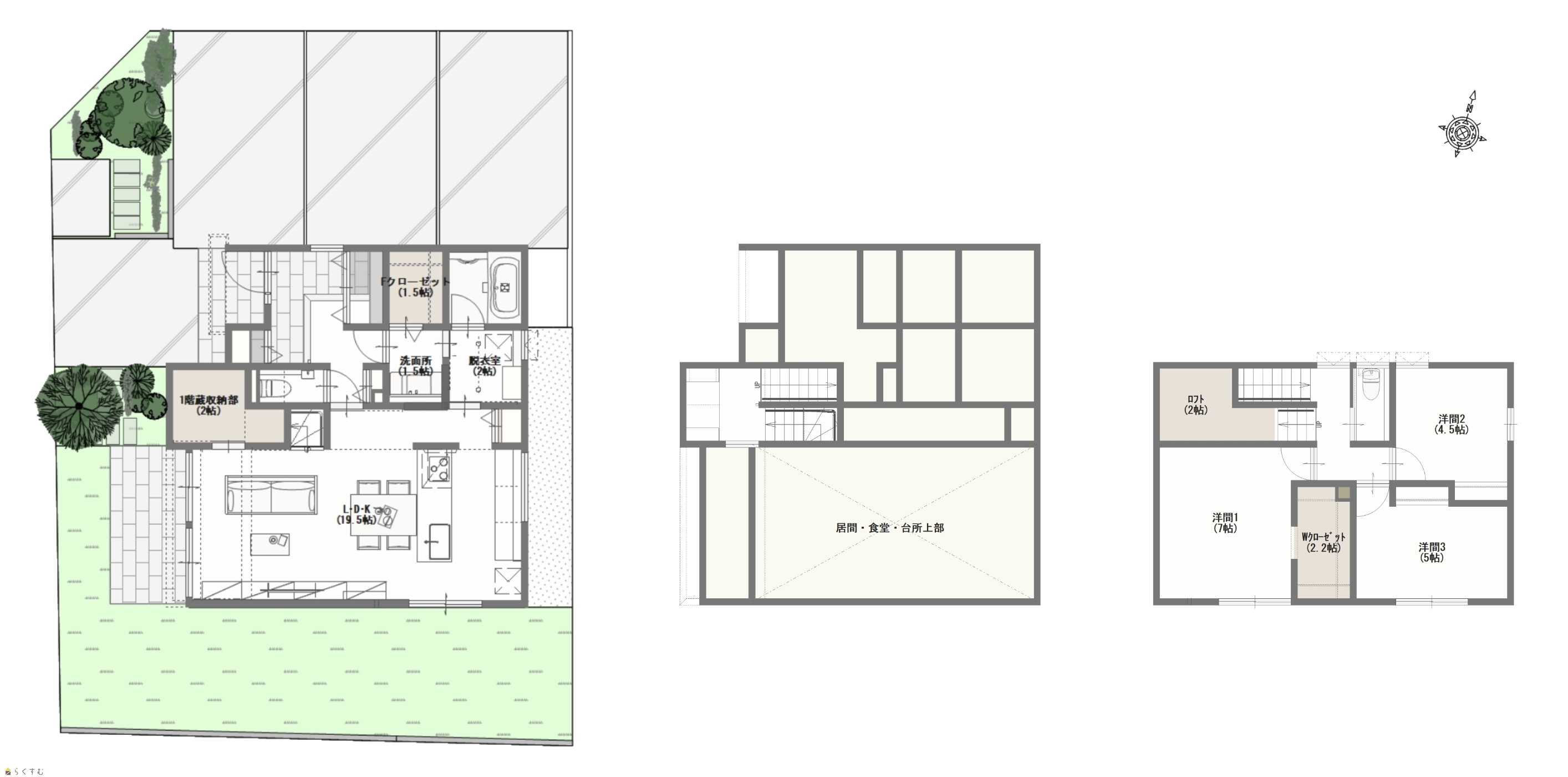 3LDK (洋室:7、5、4.5) LDK19.5帖 建築確認番号:NK第25本02160号 |