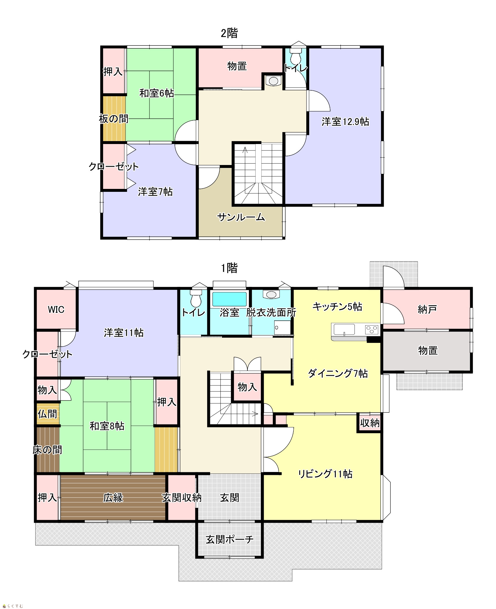 5LDK キッチン5 ダイニング7 リビング11 洋室12.9 洋室11 洋室7 和室8 和室6 公募面積、契約不適合責任免責による売買です。 |