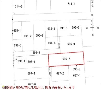 | 設備 | 更地、閑静な住宅街、建築条件なし、所有権、側溝、電気、都市ガス(宅地内)、上水道(宅地内)、下水道(宅地内)、住宅向け | ||