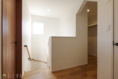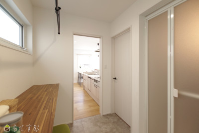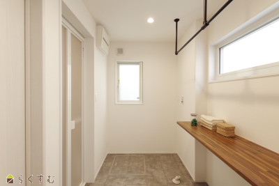 キッチンぐるぐる回遊動線で家事楽間取り!1Fにランドリールーム付きでお洗濯がここで完結!3帖のウォークインクロークで家族みんなの収納バッチリ!