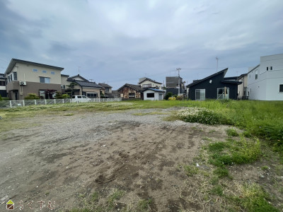| 設備 | 整形地、南側道路面す、更地、学校近く、スーパー近く、最寄り駅近く、建築条件なし、所有権、側溝、下水道(前面道路)、都市ガス(宅地内)、上水道(宅地内)、住宅向け | ||