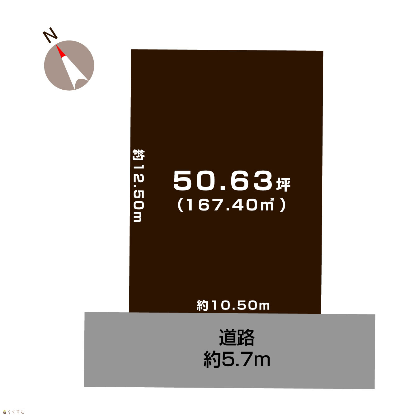 | 形状 | 間口 10.50m × 奥行 12.50m | 道路 | 公道 南西 幅員5.7m |