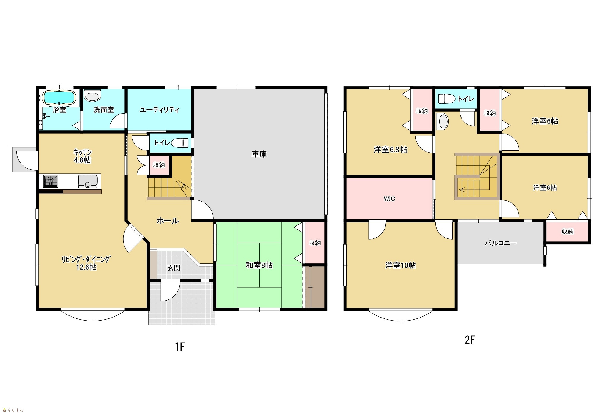 5LDK (和室:8畳) (洋室:10、6.8、6、6) LDK17.4 |