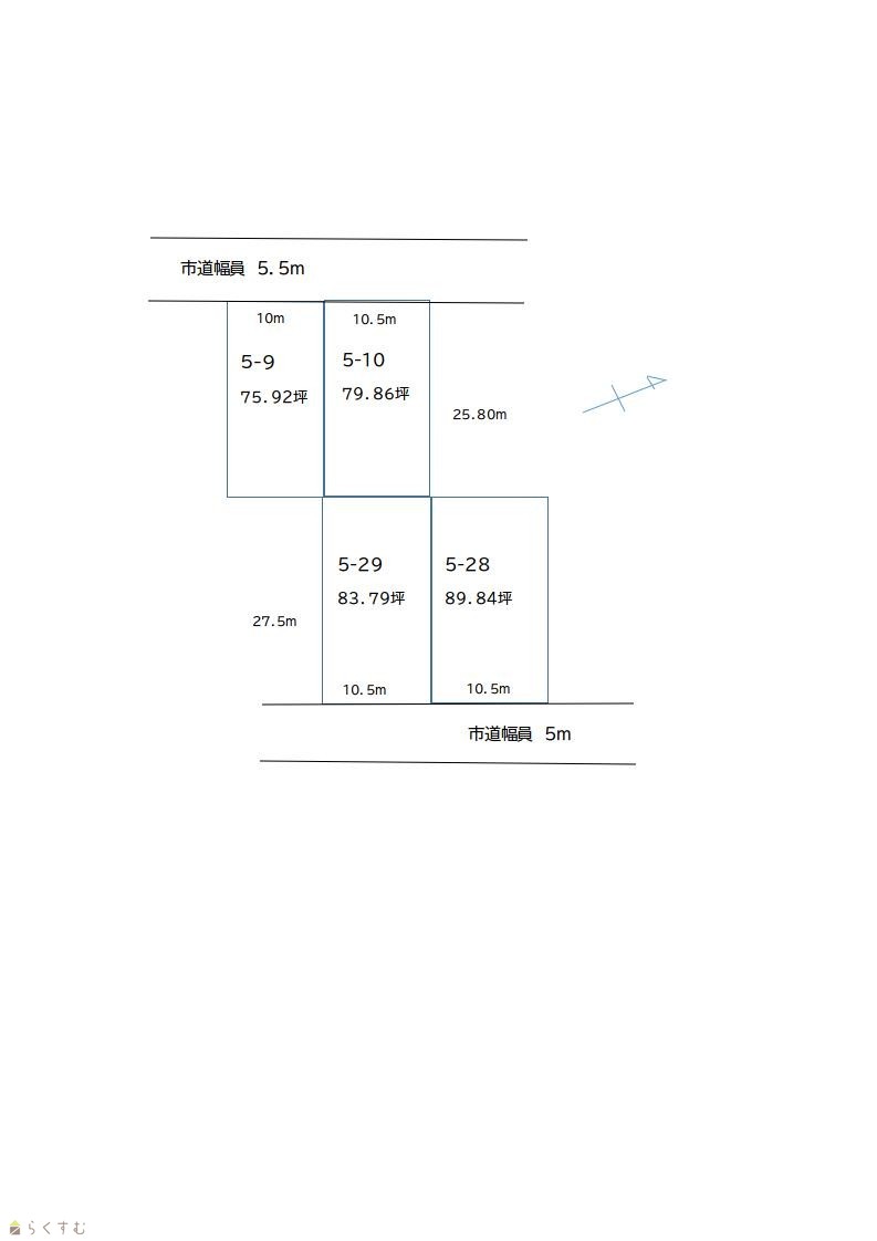 | 形状 | 間口 10.5m × 奥行 25.8m | 道路 | 公道 |