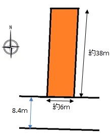 | 形状 | 間口 6m × 奥行 38m | 道路 | 南8.4m |