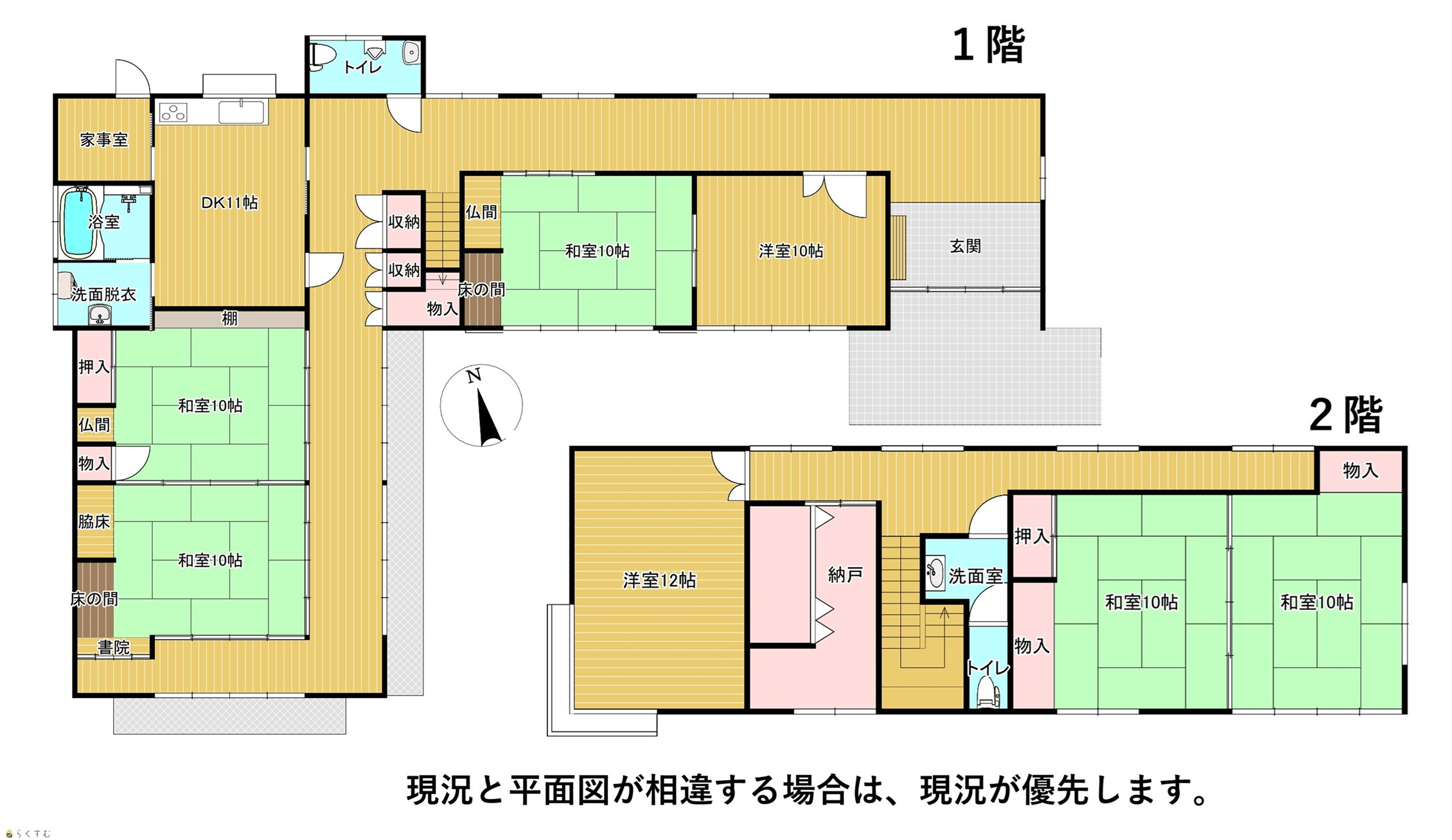 7LDK (和室:10畳、10畳、10畳、10畳、10畳) (洋室:10、12) LDK11 |