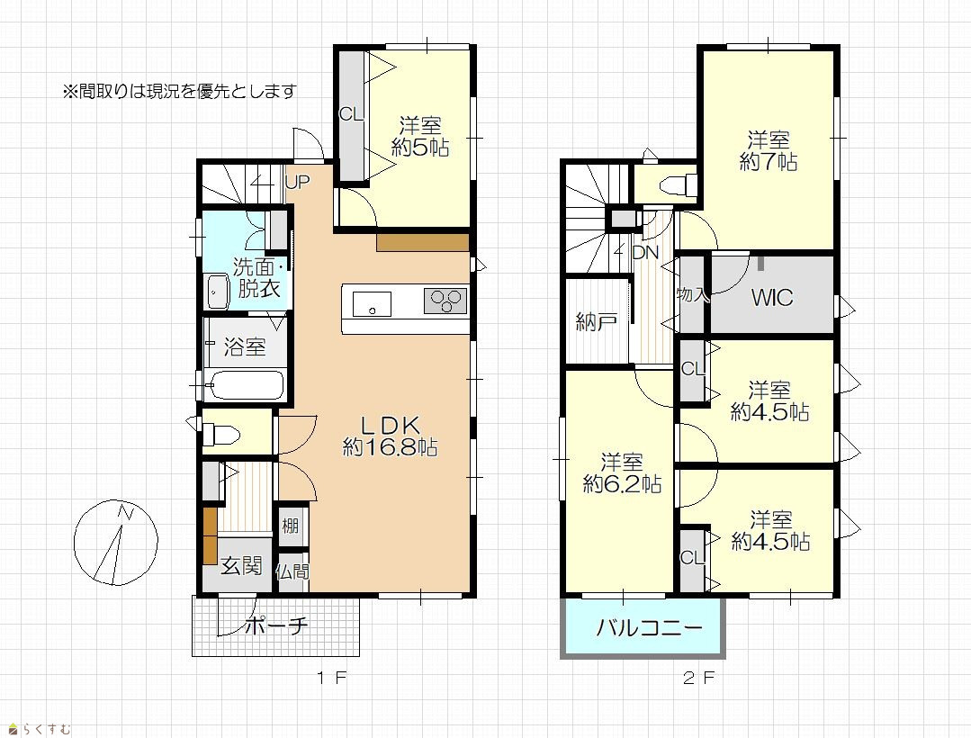 5LDK (洋室:5、7、6.2、4.5、4.5) LDK16.8 |