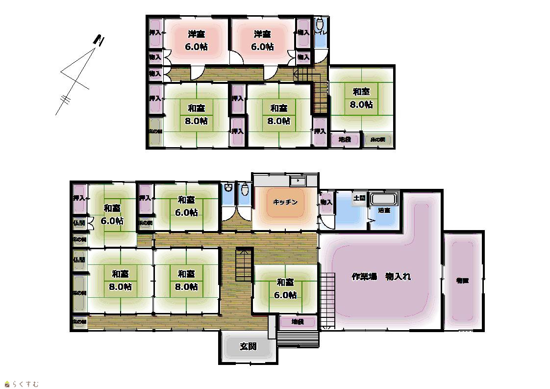 | 間取り | 10DK (和室:6畳、6畳、6畳、8畳、8畳、8畳、8畳、8畳) (洋室:6、6) | ||