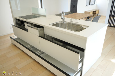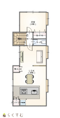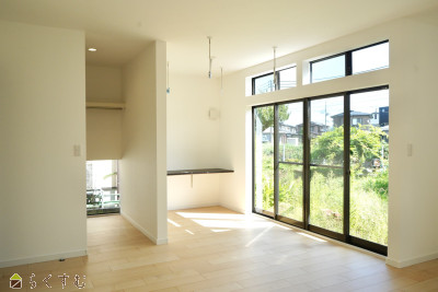 | 20帖以上の開放的なリビング。1階に物干しスペースがあるため、洗濯物をした後にすぐ干せます。 | |||