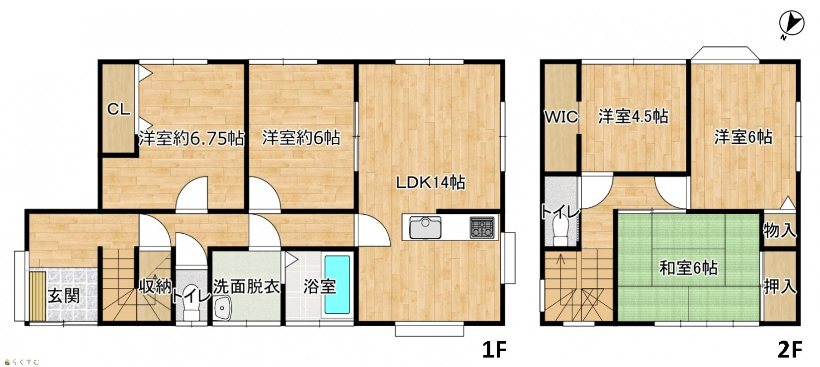 5LDK (和室:6畳) (洋室:6.7、6、6、4.5) LDK14 |
