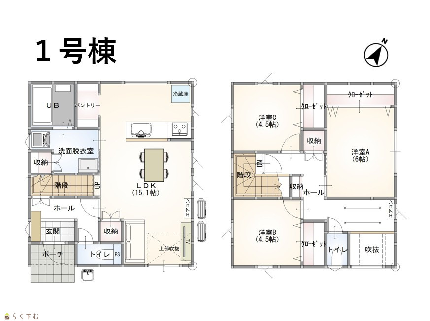 3LDK (洋室:6、4.5、4.5) LDK15.1 |