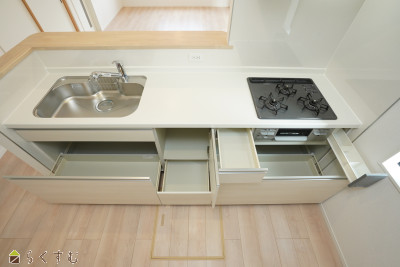 | 設備 | 前面道路6m以上、日当り良好、スーパー近く、耐震構造、LDK15畳以上、駐車場2台以上、TVインターホン、複層ガラス、ディンプルキー、システムキッチン、カウンターキッチン、浄水器、3口コンロ、ガスコンロ設置済み、追いだき機能付き、浴室暖房乾燥機、バス1坪以上、温水洗浄便座、シャワー付き洗面台、24時間換気システム、省エネ給湯、高気密高断熱住宅、都市ガス、上水道、下水道、電気、全居室収納あり、床下収納、シューズBOX | ||