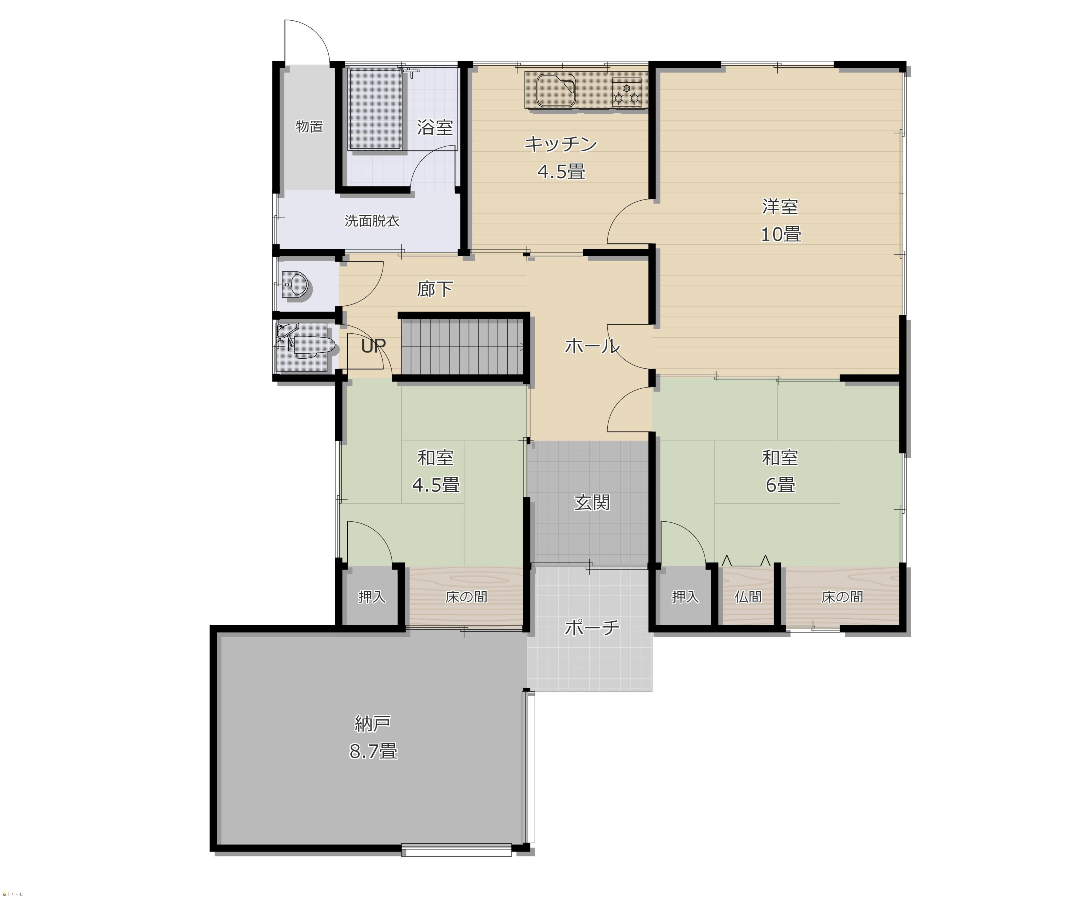 | 建物面積 | 1階 84.05㎡/ 2階 57.4㎡/ 計 145.45㎡ /43.99坪 | ||