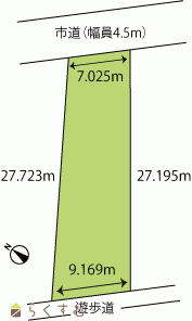 | 形状 | 間口 7m × 奥行 27m | 道路 | 北側幅員4.5mの長岡市道に接道 |