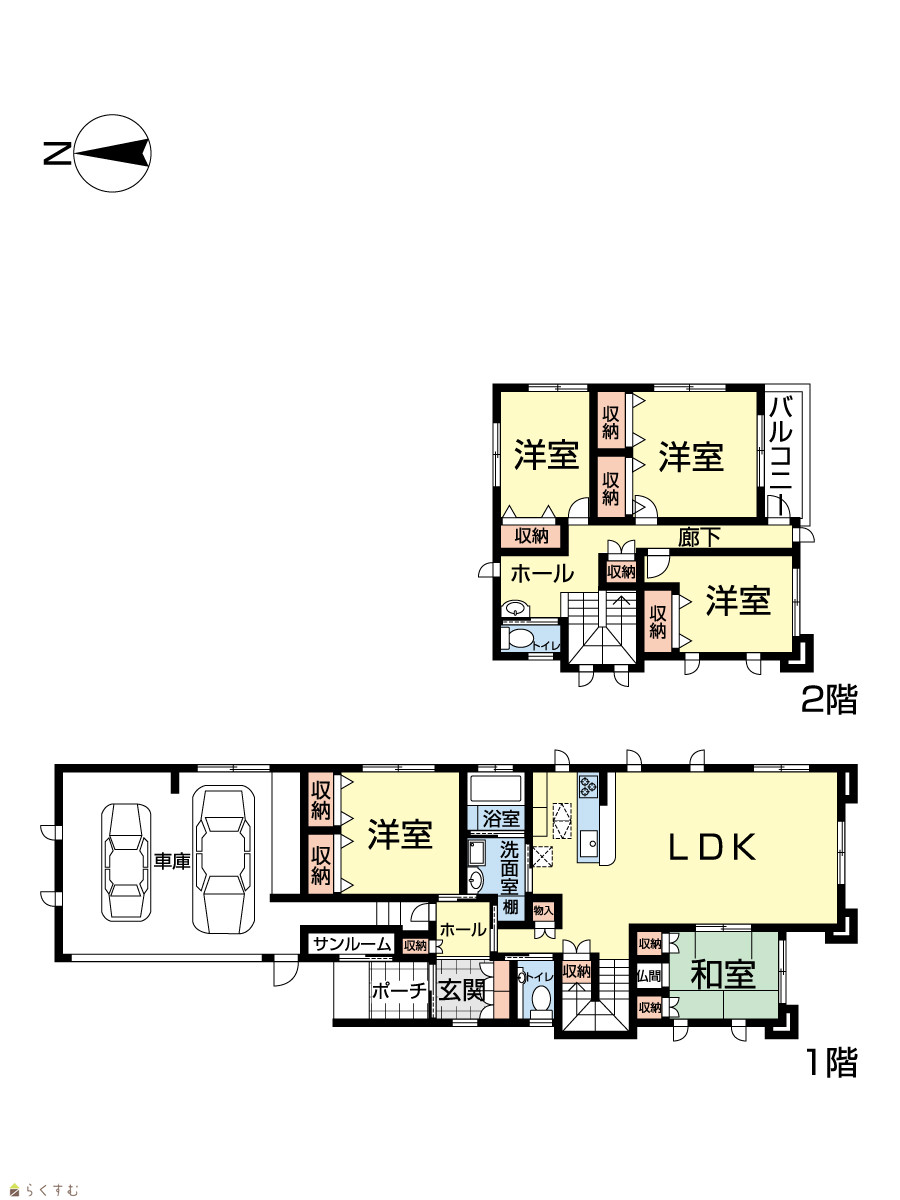 | 二世帯対応の広々空間。南側リビングで日当たり良好◎ | |||