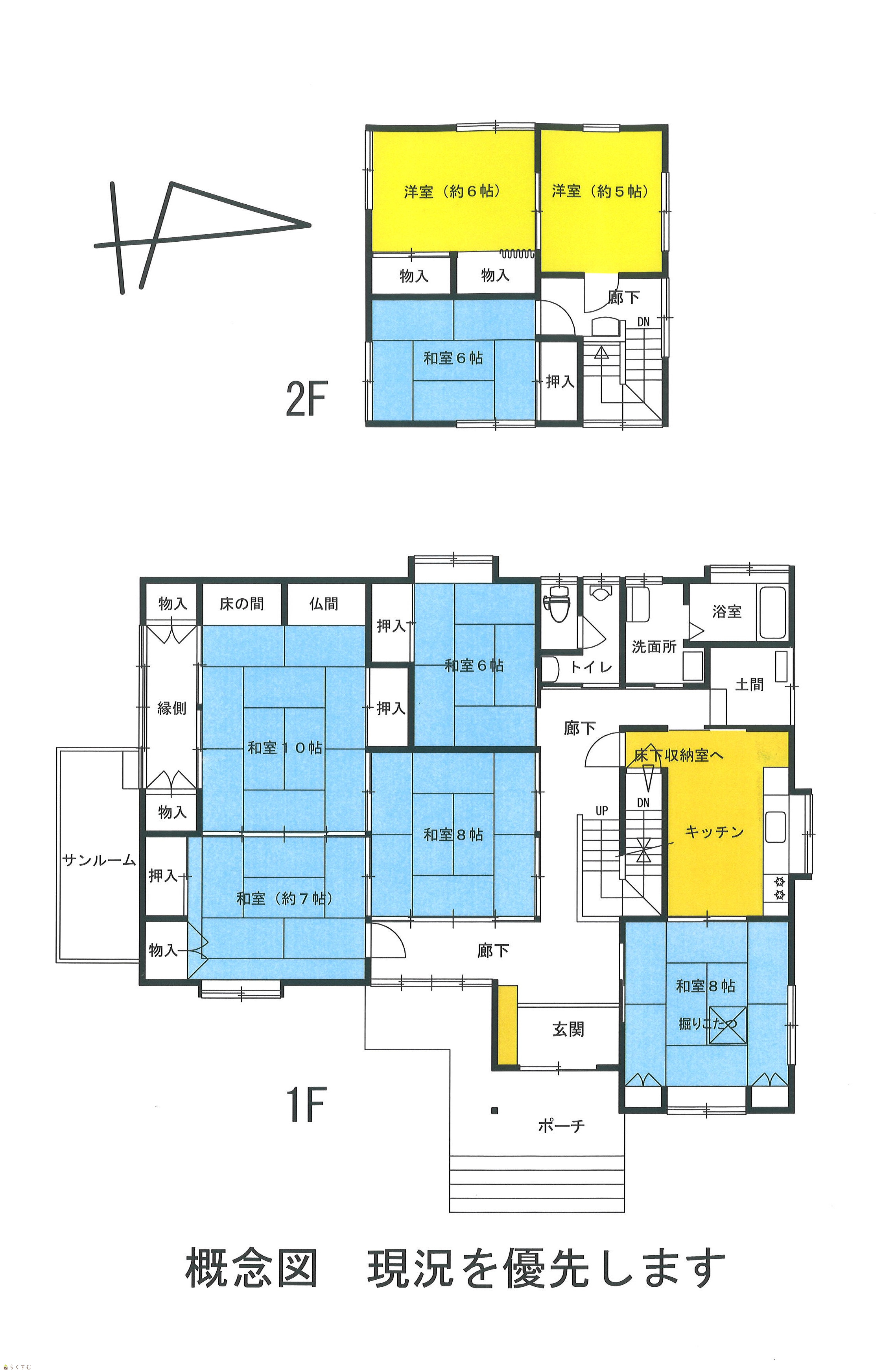 8DK (和室:6畳、6畳、6畳、7畳、8畳、8畳、10畳) (洋室:5、6) DK10 |
