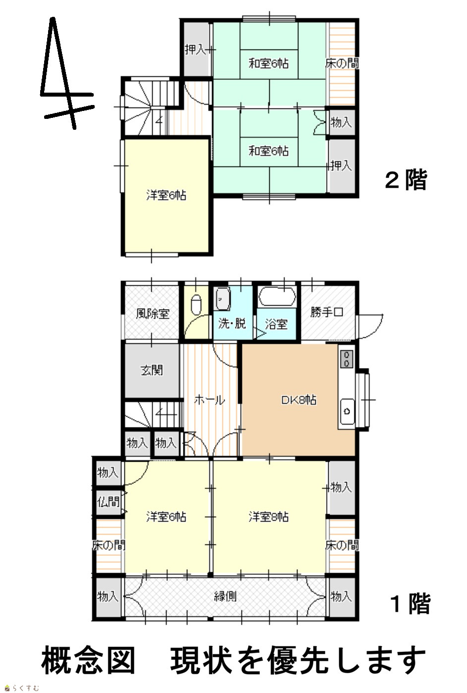 間取り 5DK (和室:6畳、6畳) (洋室:6、6、8)