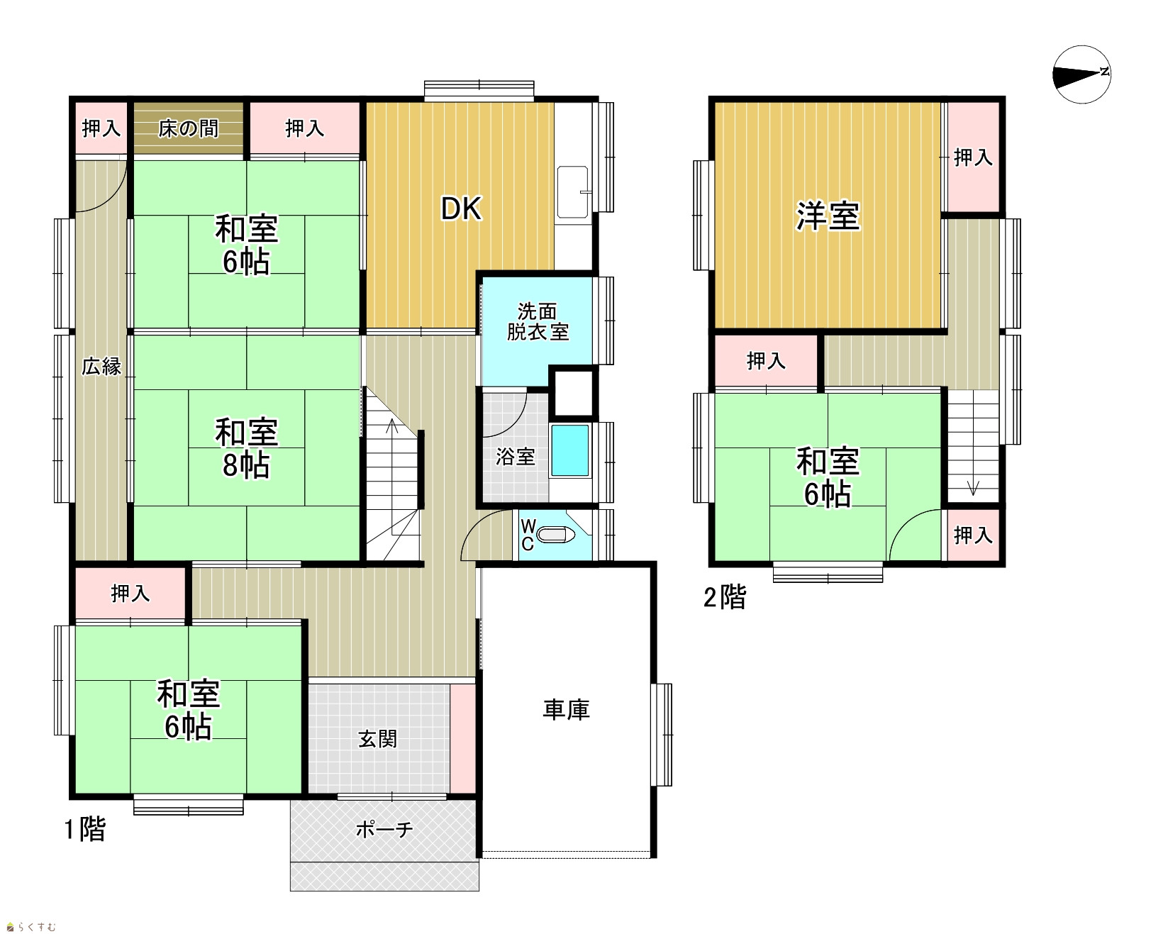| 間取り | 5DK (和室:6畳、6畳、8畳、6畳、8畳) | ||