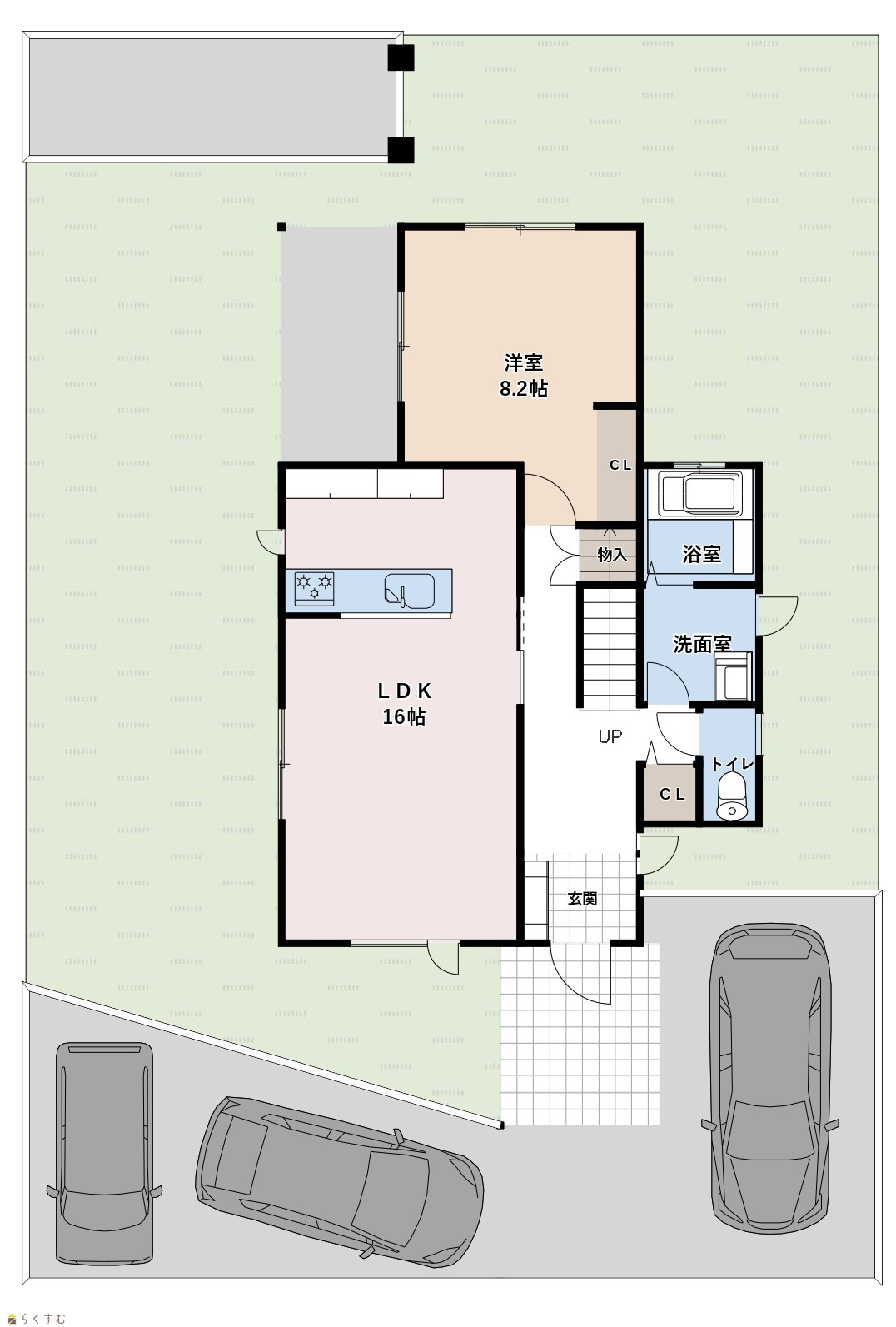 4LDK (洋室:8.2、8、8、6) LDK16 |