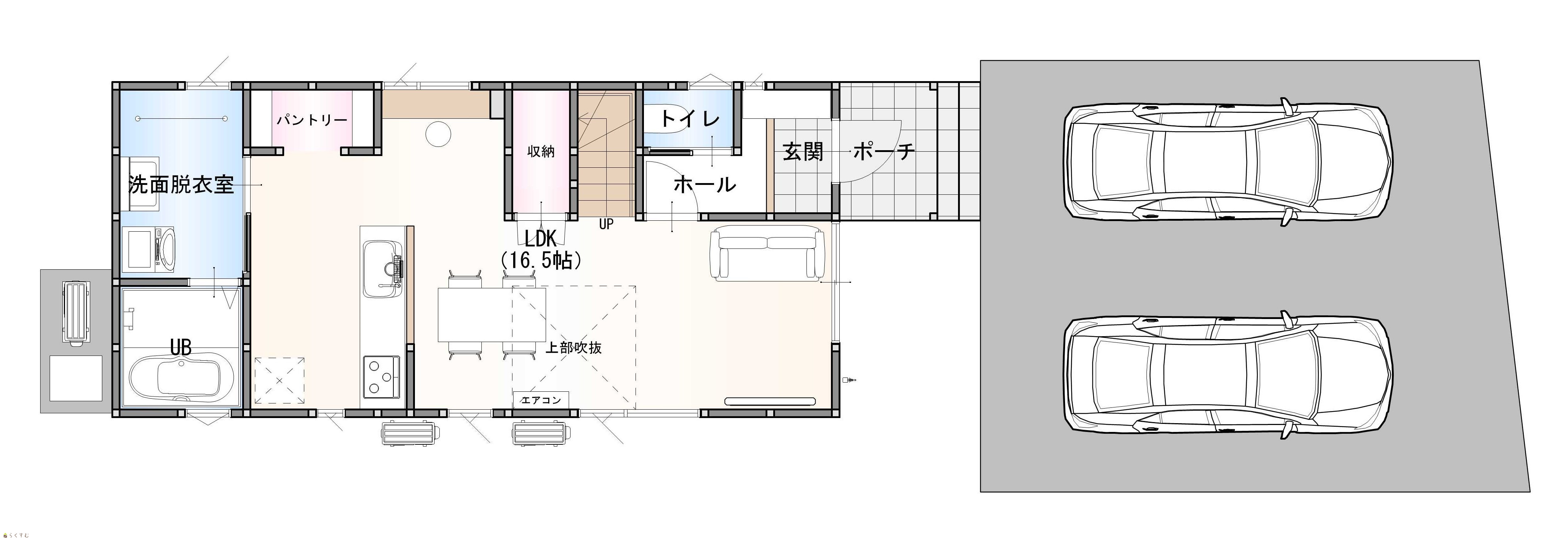 | 建物面積 | 1階 45.54㎡/ 2階 42.23㎡/ 計 87.77㎡ /26.55坪 | ||