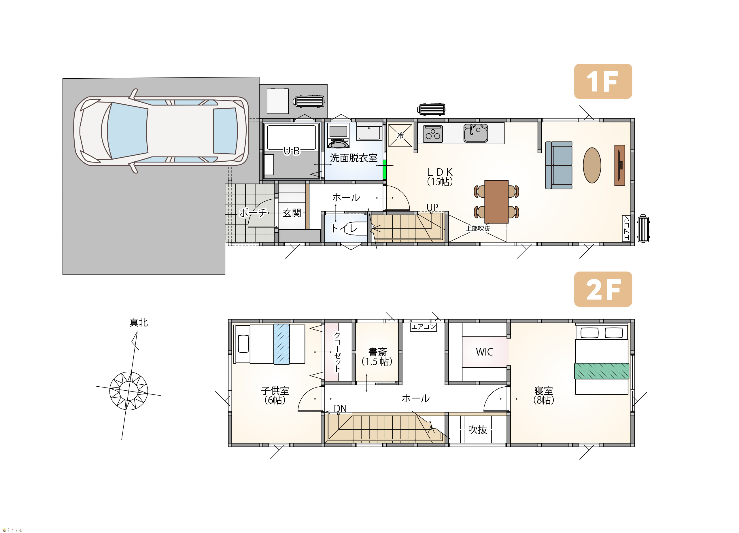 | 建物面積 | 1階 38.92㎡/ 2階 41.4㎡/ 計 80.32㎡ /24.29坪 | ||