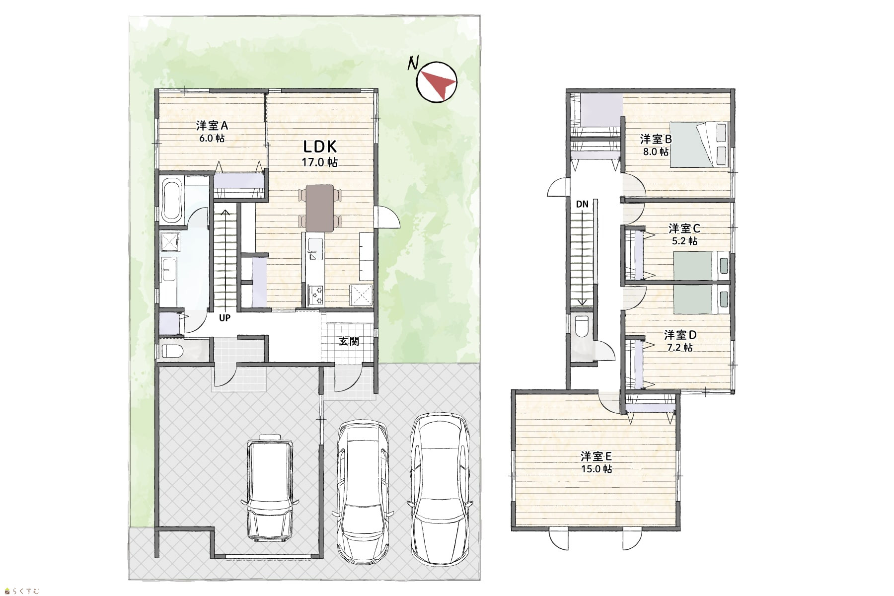 5LDK (洋室:6、8、5.2、7.2、15) LDK17 |
