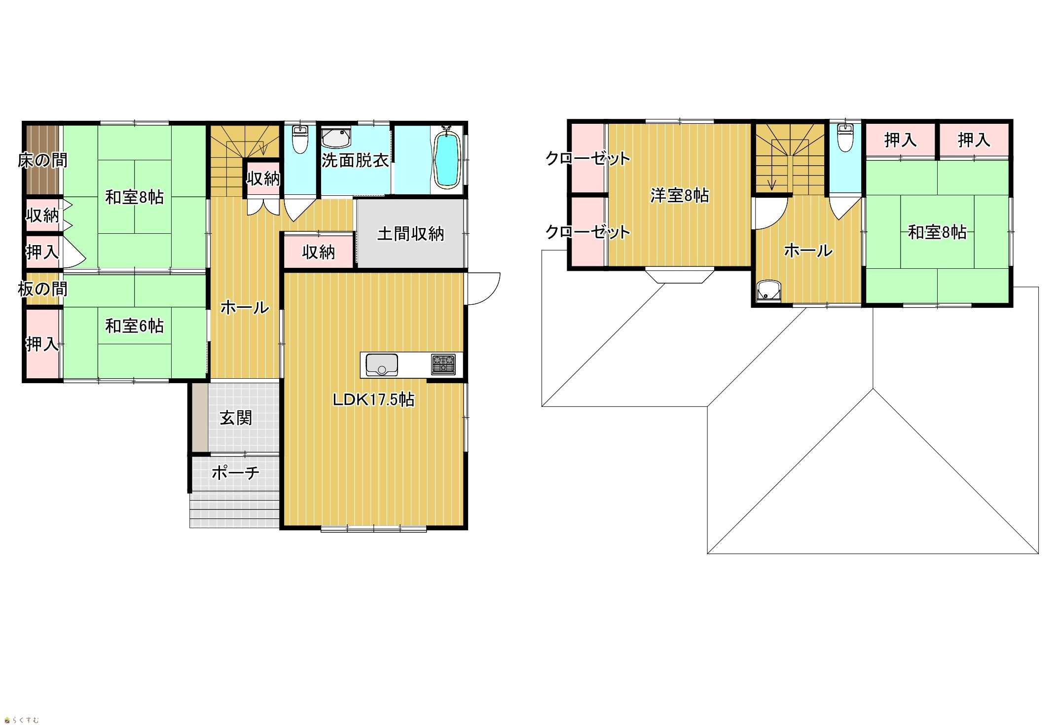4LDK (和室:8.0畳、6.0畳、8.0畳) (洋室:8.0) LDK17.5 |