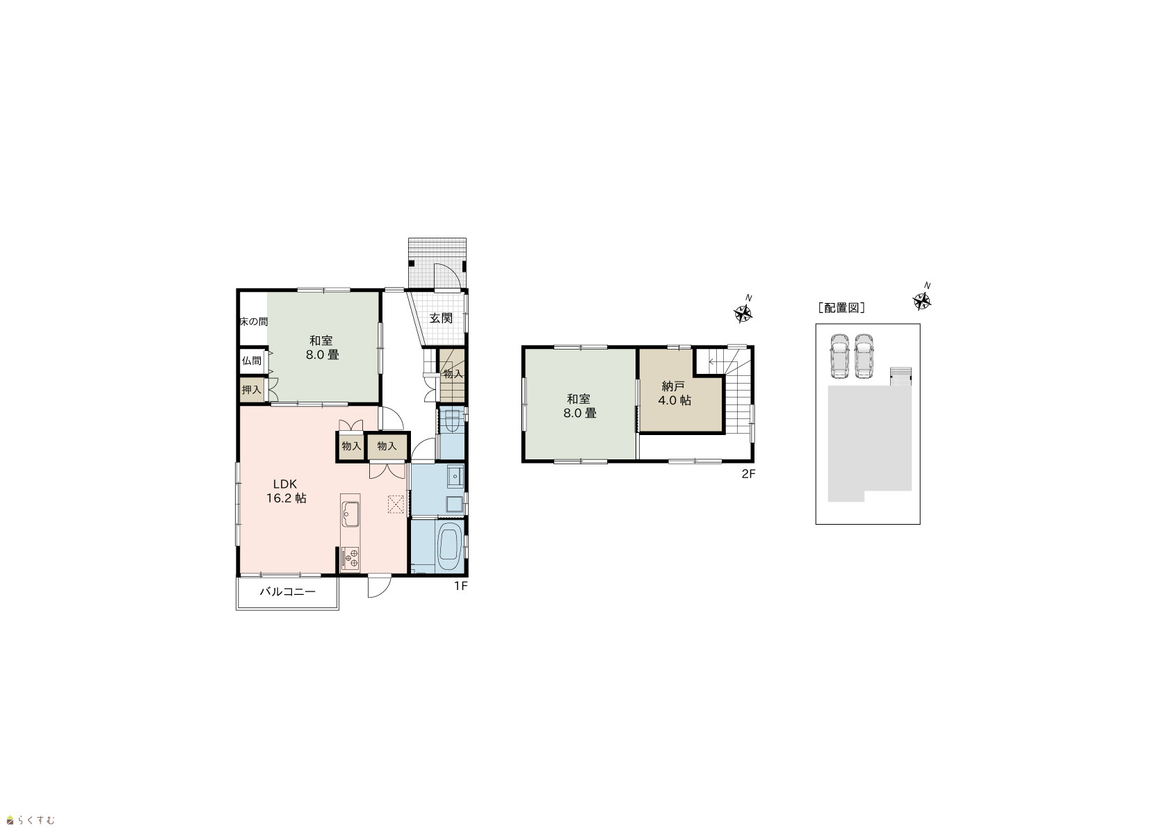 2LDK (和室:8.0畳、8.0畳) LDK16.2 |