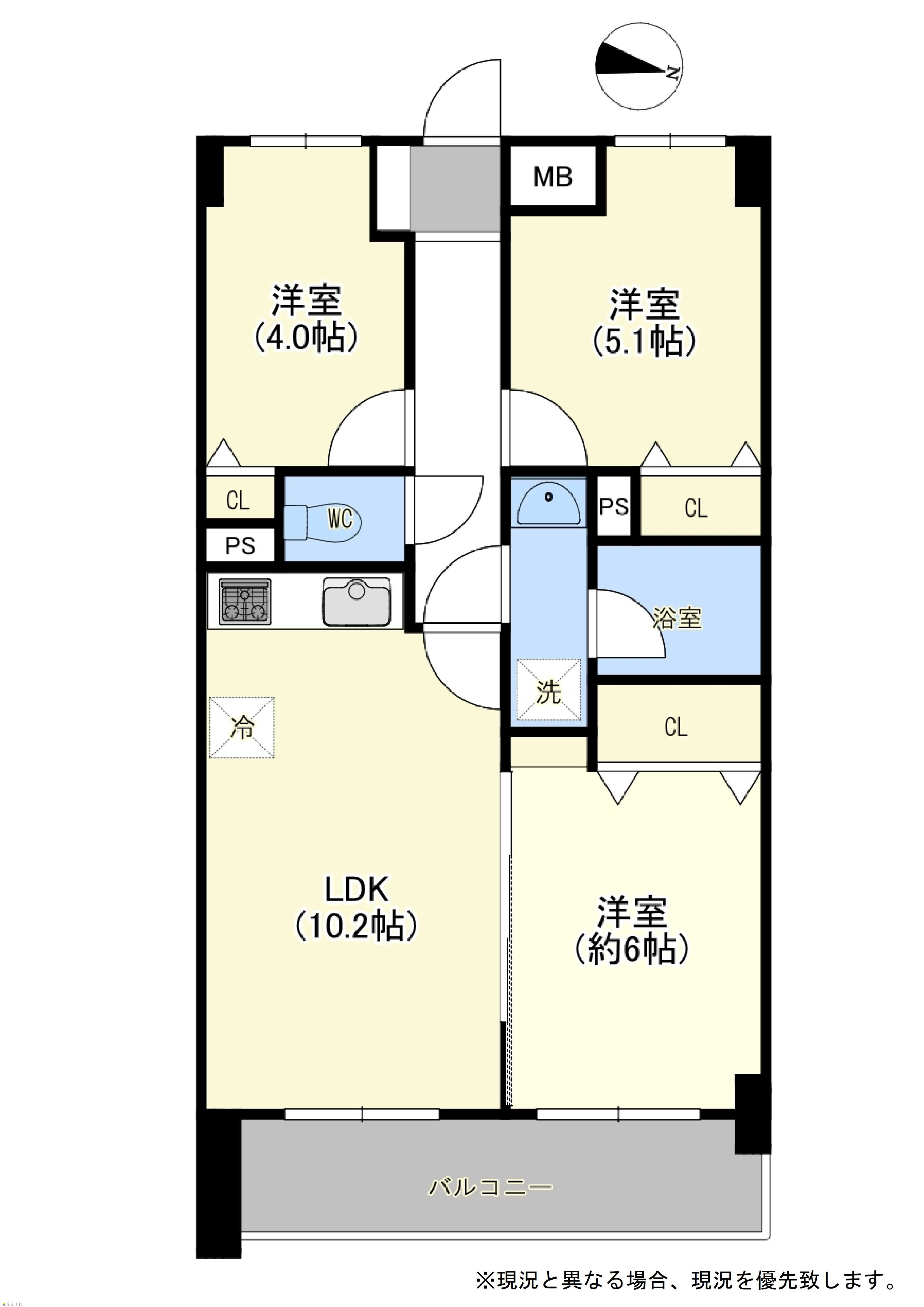 3LDK (洋室:6.0、5.1、4.0) LDK 10.2 |