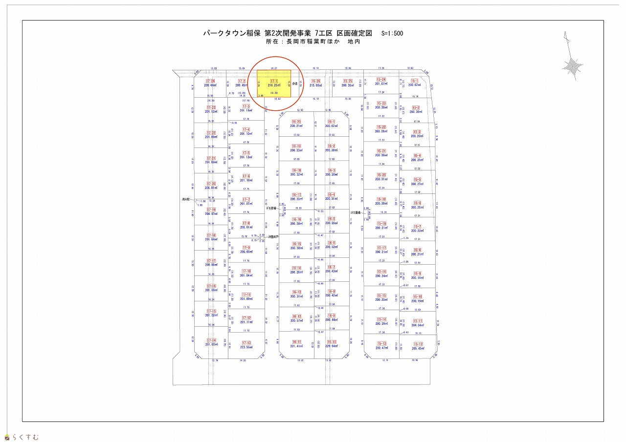 【おかげさまで契約件数420区画突破】パークタウン稲保後期造成工事 第7期区画17-1 南/東/北の角地!前面道路は7.0mのゆったり設計!車道は消雪パイプ設置済で冬も安心です。【仲介料不要・建築条件無し】