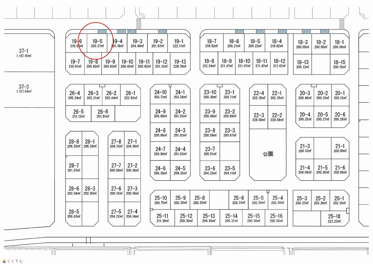 【おかげさまで契約件数420区画突破】パークタウン稲保後期造成工事 第8期区画19-5 60坪の整形の土地。前面道路は11.0mのゆったり設計!車道は消雪パイプ設置済で冬も安心です。【仲介料不要・建築条件無し】