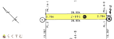 | 形状 | 間口 16.6m × 奥行 29.9m | 道路 | 公道/北側6m/東側6m/西側17m |