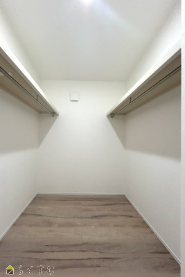 | 広々とした洗面脱衣室は物干しスペースとしても利用可。2階洋室にウォークインクローゼット完備で収納スペースも充実。 家族同士のコミュニケーションが取りやすい対面キッチン、リビング階段。 | |||