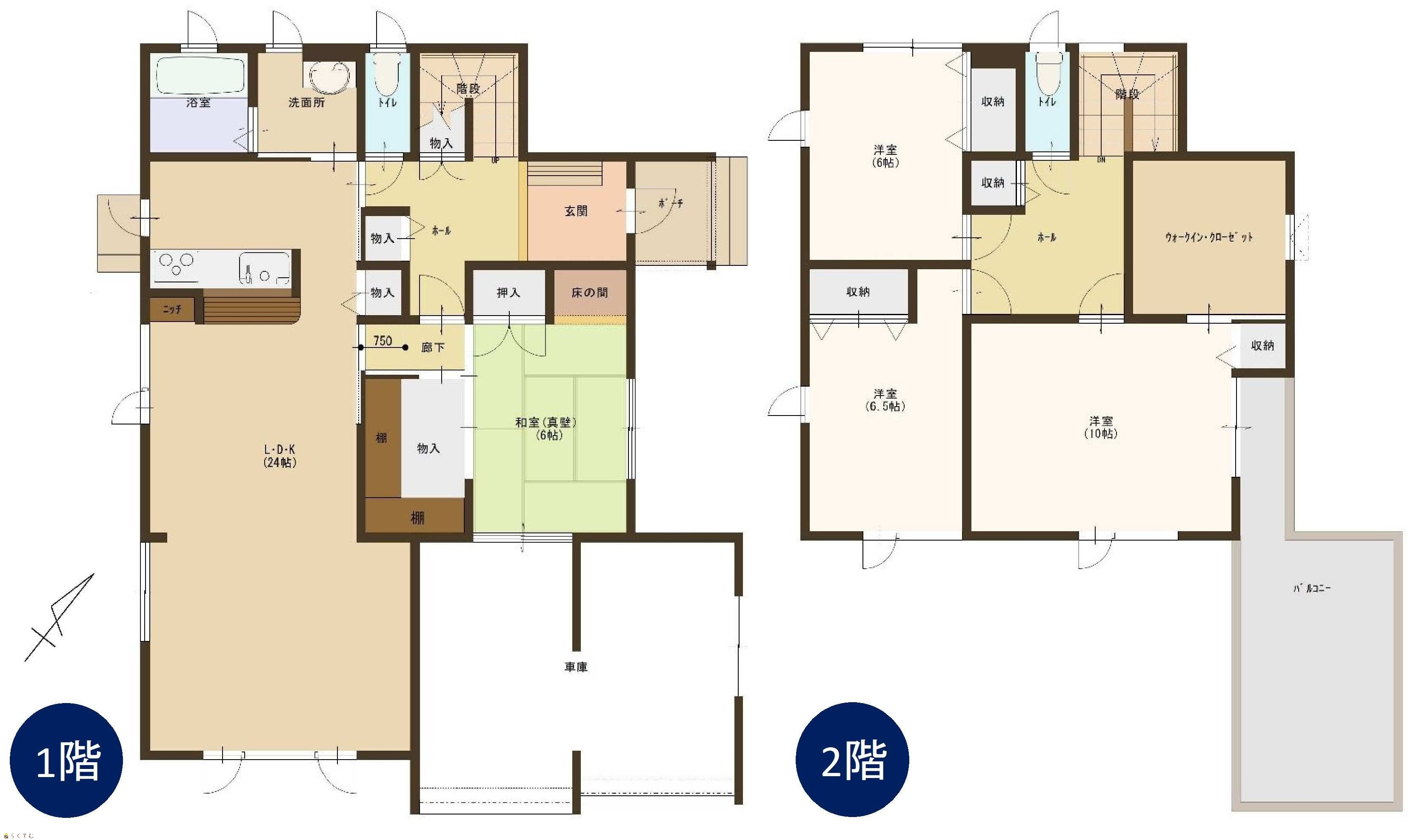 4LDK (和室:6畳) (洋室:10、6.5、6) LDK24 |
