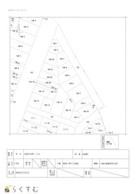 | 設備 | 整形地、更地、建築条件なし、即引き渡し可、側溝、都市ガス(前面道路)、上水道(前面道路)、下水道(前面道路)、都市ガス(宅地内)、上水道(宅地内)、前面道路融雪設備あり、住宅向け、事業用向け | ||
