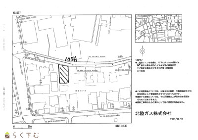 | 設備 | 整形地、更地、スーパー近く、閑静な住宅街、所有権、都市ガス(前面道路)、上水道(前面道路)、下水道(前面道路)、電気、前面道路融雪設備あり、住宅向け | ||