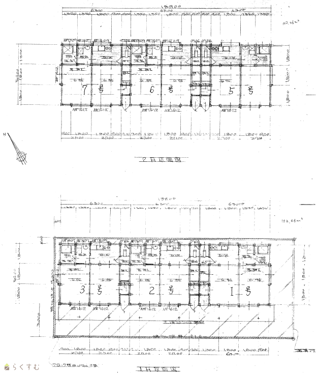 | 建物面積 | 1階 104.34㎡/ 2階 104.34㎡/ 計 208.68㎡ /63.12坪 | ||
