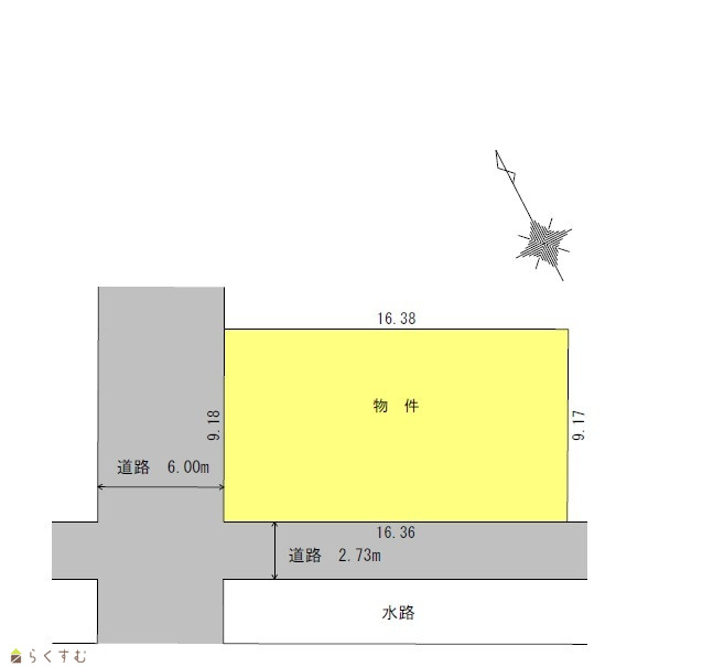 | 形状 | 間口 9.18m × 奥行 16.36m | 道路 | 北西側6m長岡市道・南西側2.7m長岡市道 角地 |