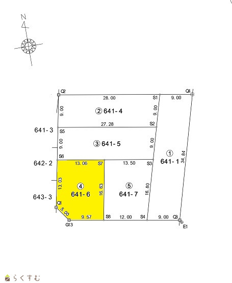 | 形状 | 間口 9.57m × 奥行 16.63m | 道路 | 西側市道7.7m 南側市道6m |