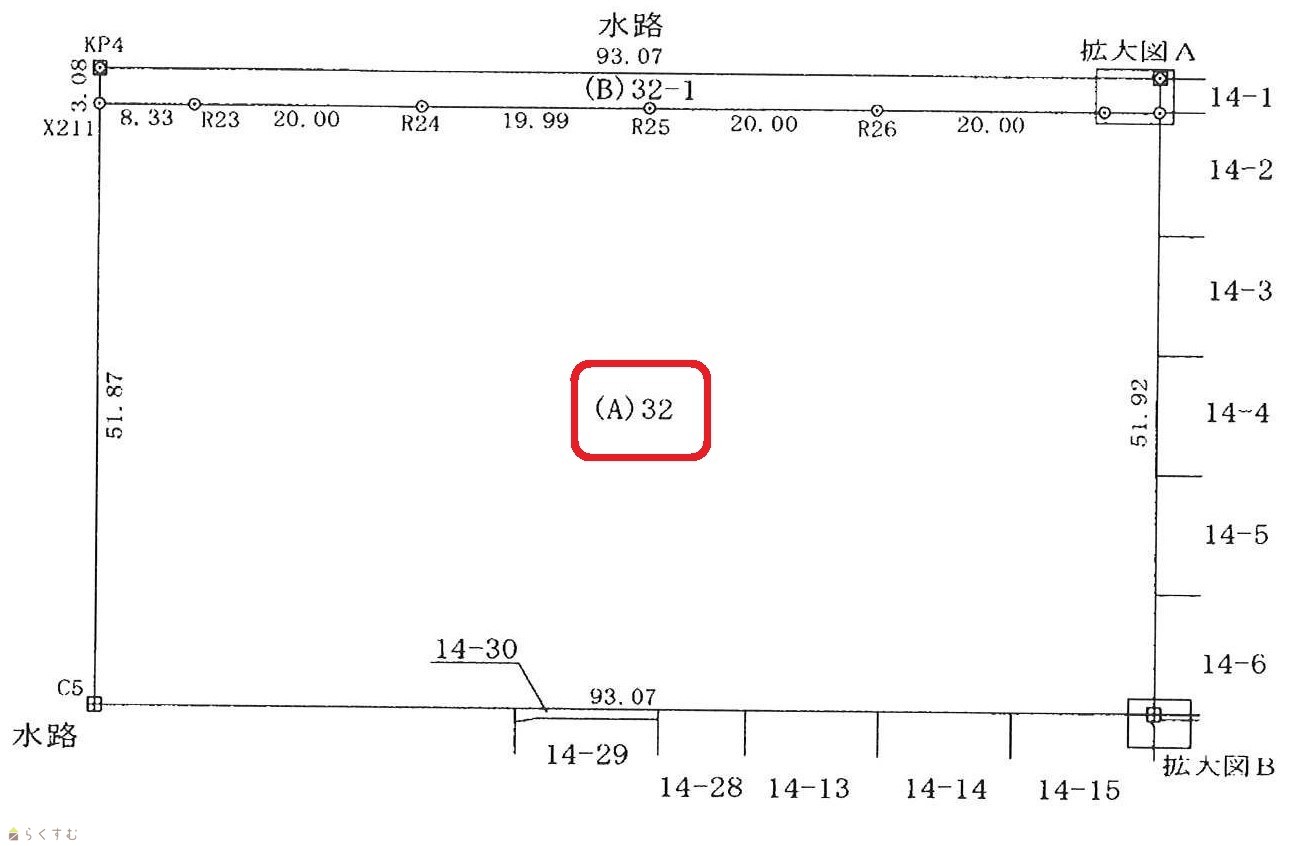 | 形状 | 間口 93m × 奥行 51m | 道路 | 北 市道 幅員6m |