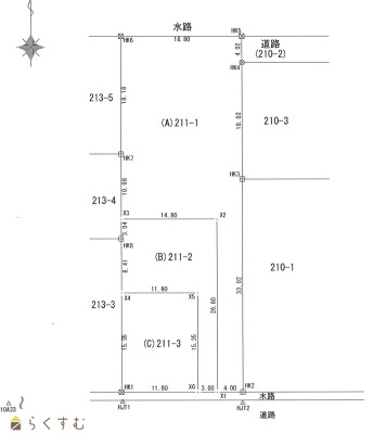 | 設備 | 南側道路面す、更地、最寄り駅近く、閑静な住宅街、建築条件なし、所有権、即引き渡し可、側溝、都市ガス(前面道路)、上水道(前面道路)、下水道(前面道路)、上水道(宅地内)、住宅向け | ||