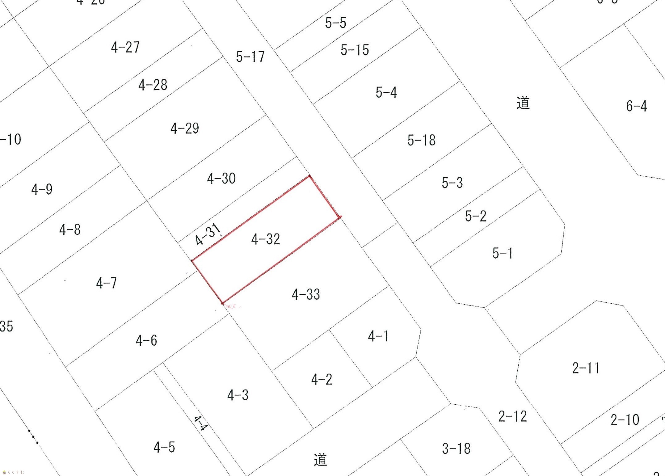 | 設備 | 整形地、前道6m以上、更地、学校近く、閑静な住宅街、建築条件なし、側溝、都市ガス(前面道路)、上水道(前面道路)、下水道(前面道路)、電気、住宅向け | ||