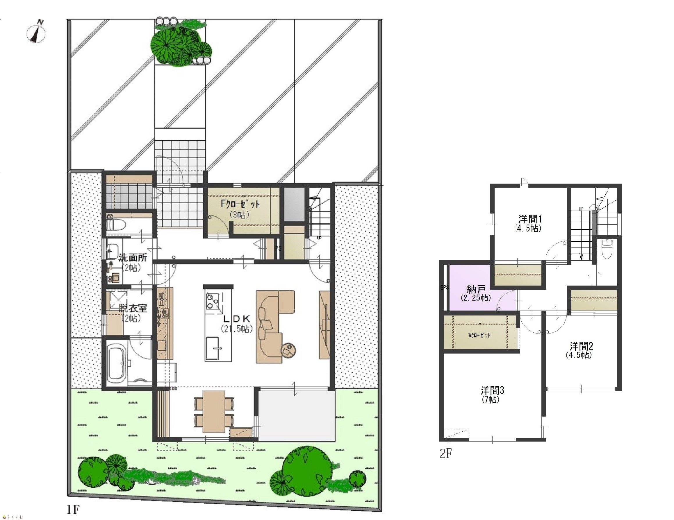 3LDK (洋室:7、4.5、4.5) LDK21.5帖 |