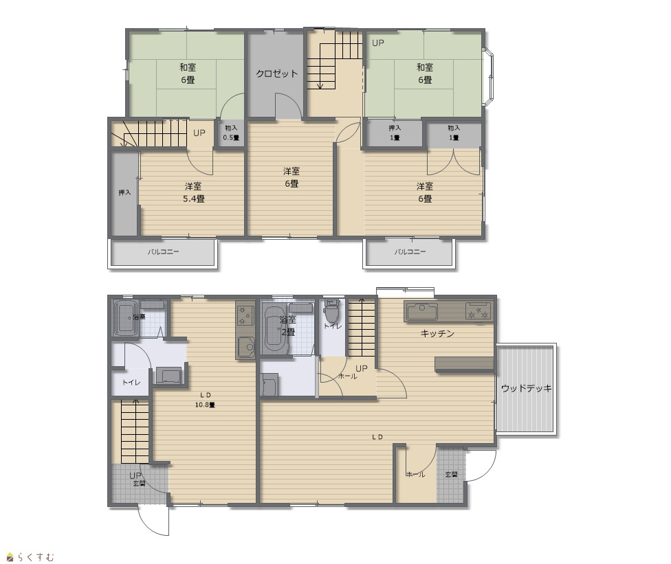5LDK (和室:6.0畳、6.0畳) (洋室:5.4、6.0、6.0) 10.3LDK、12LDK |